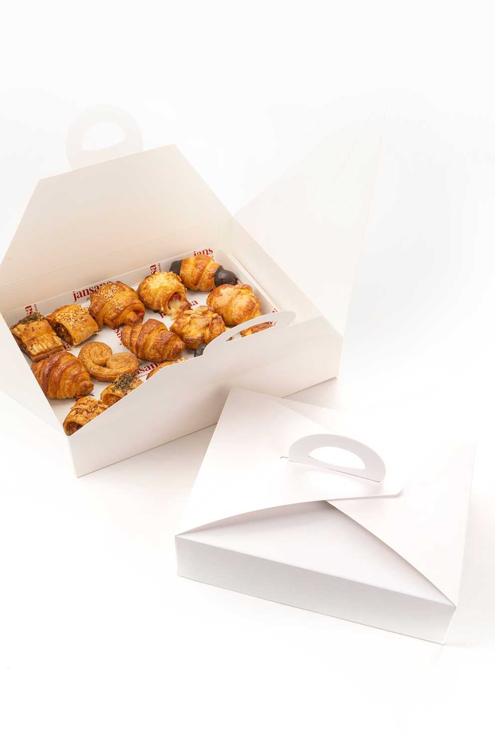 En Jansana ofrecemos una amplia selección de productos en formato mini, ideales para acompañar cualquier evento. Contamos con mini croissants en diferentes sabores: jamón dulce y queso, frankfurt, sobrasada, clásicos, de chocolate y de crema. También disponemos de palmeritas de hojaldre (clásicas y de chocolate) y hojaldritos salados de atún y de pollo. Una propuesta completa que combina dulce y salado, pensada para adaptarse a todos los gustos, perfecta tanto para celebraciones familiares y encuentros con amigos como para cumpleaños y fiestas infantiles.